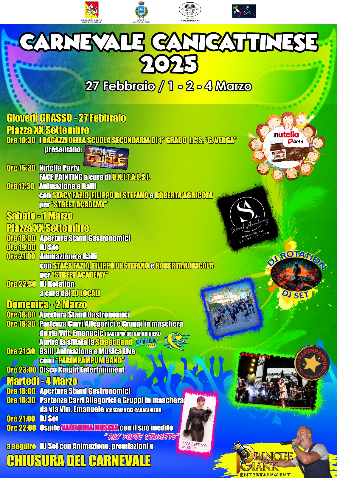 Infine, come, ricorda il Consigliere comunale Salvador Ferla che collabora l’Assessore Gazzara nella realizzazione del Carnevale, anche per questa edizione la voce del Carnevale 2025 sarà quella di Principe Giank (Giancarlo Cultrera).